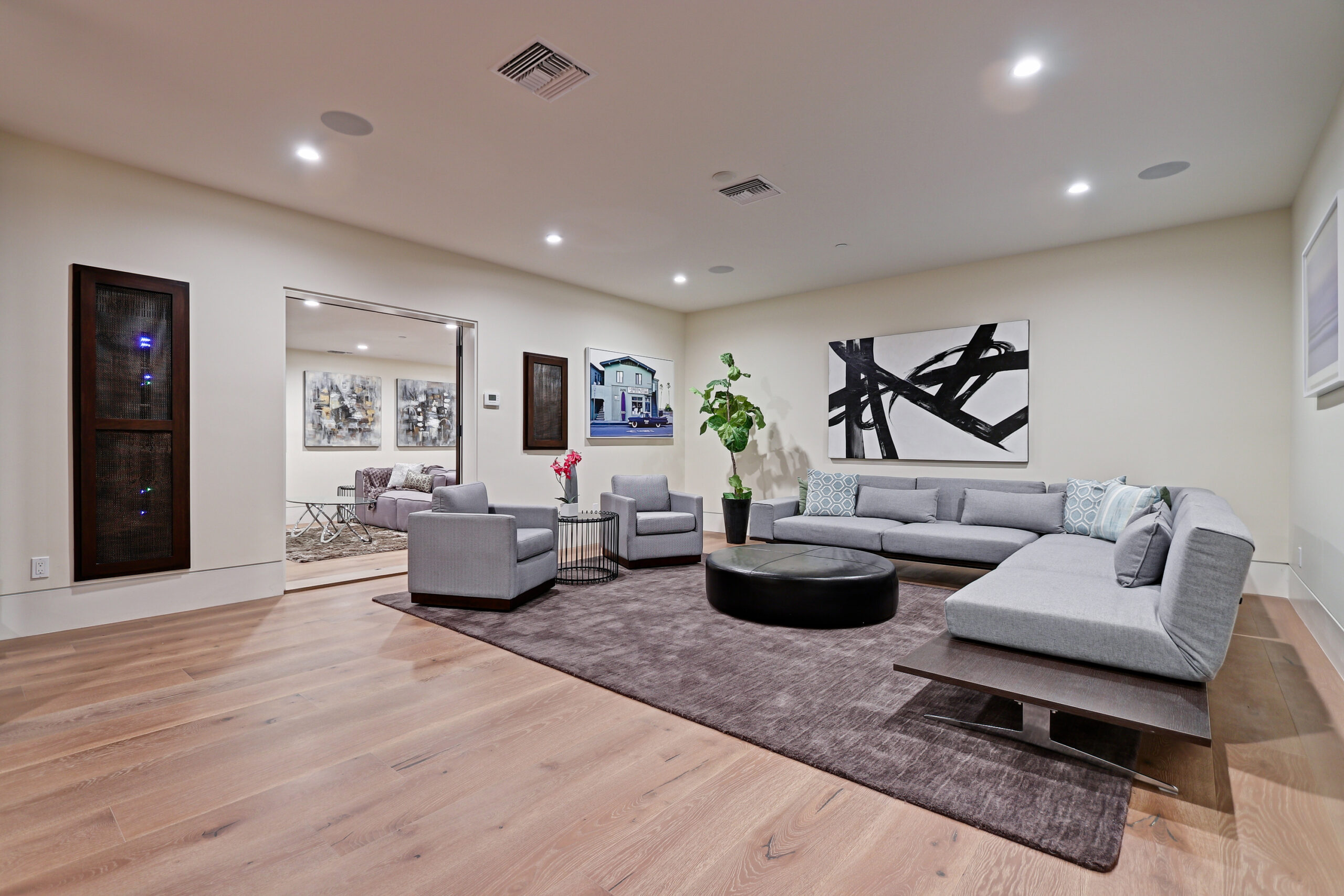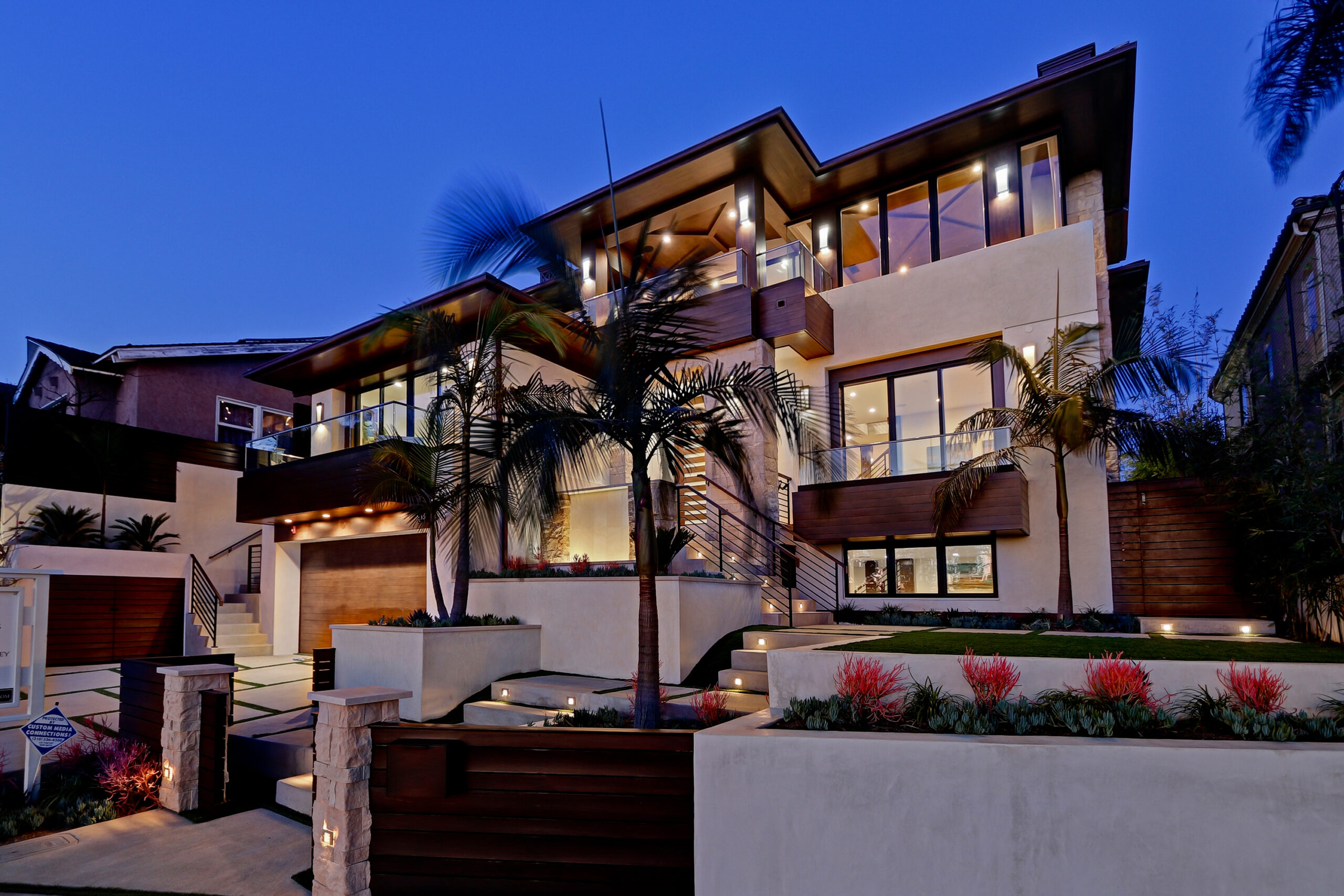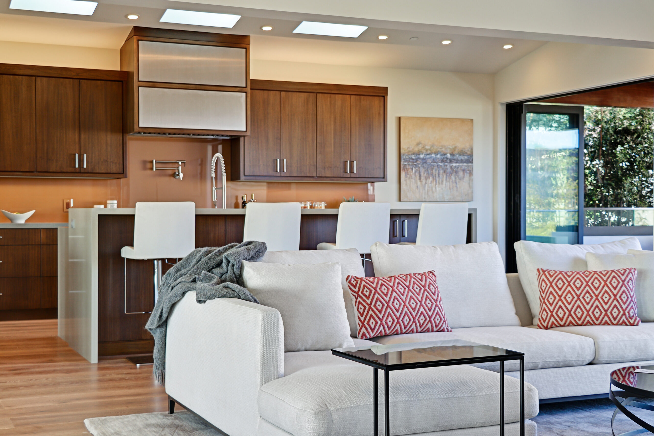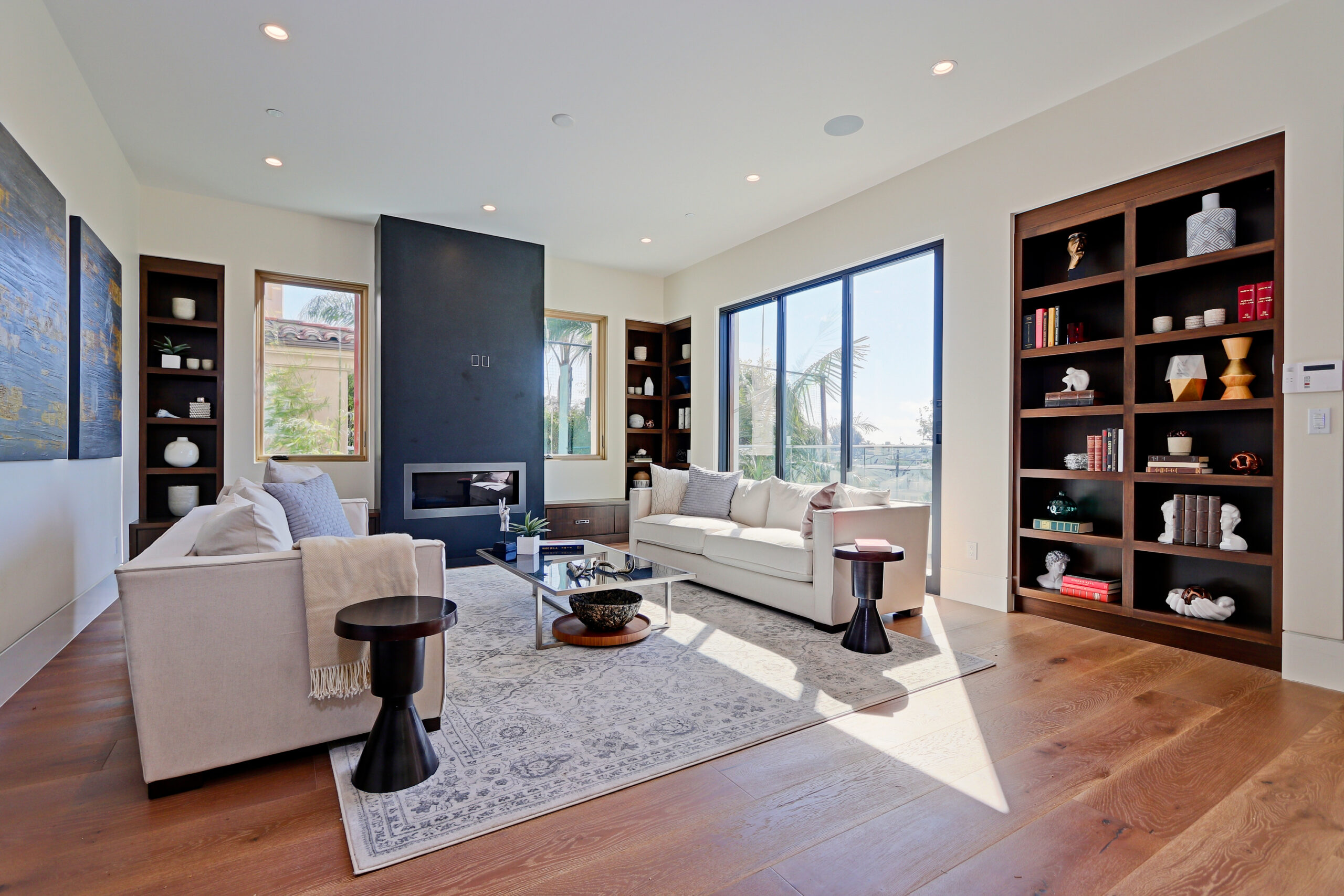 This high-end contemporary home is vertically organized to create distinct yet connected living zones, using subtle grade changes to establish hierarchy while maintaining clear sightlines to the yard, pool, and spa.