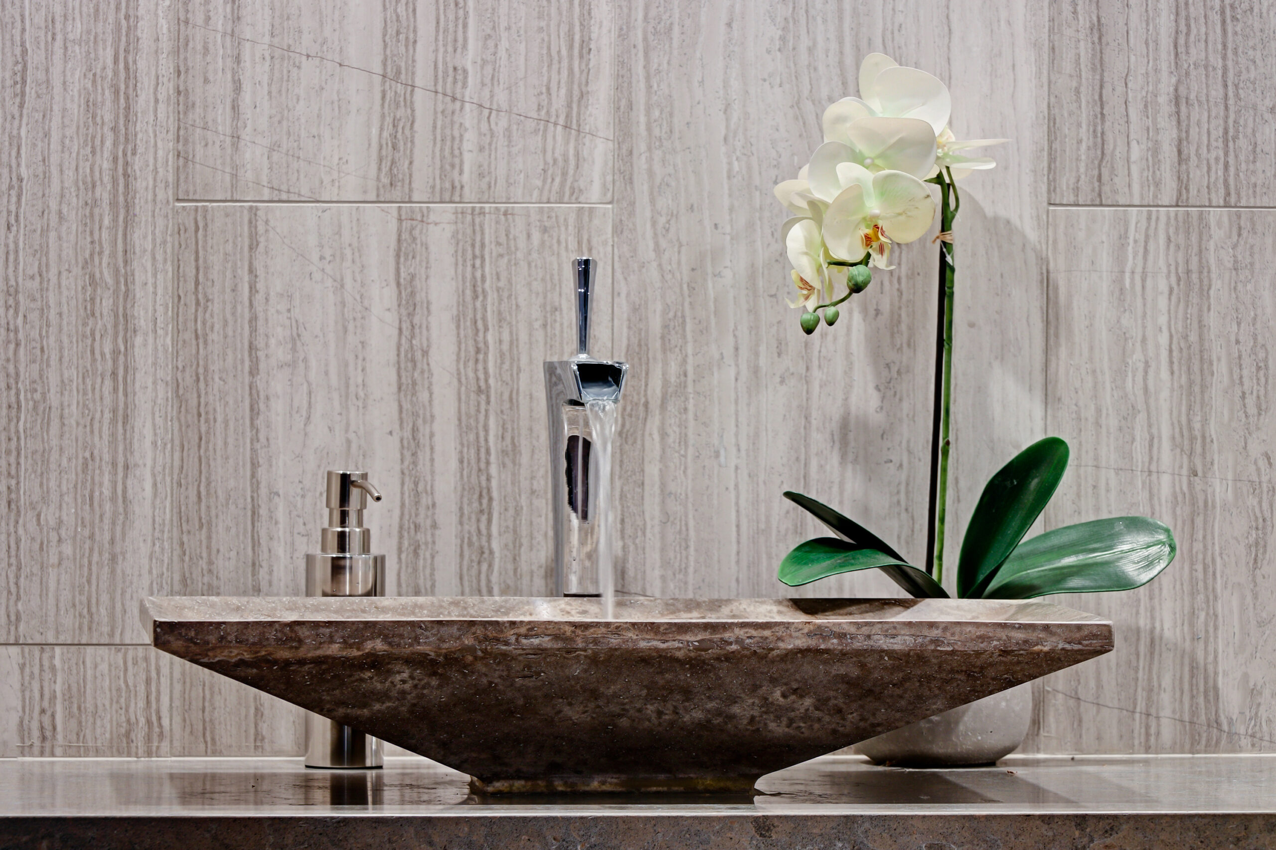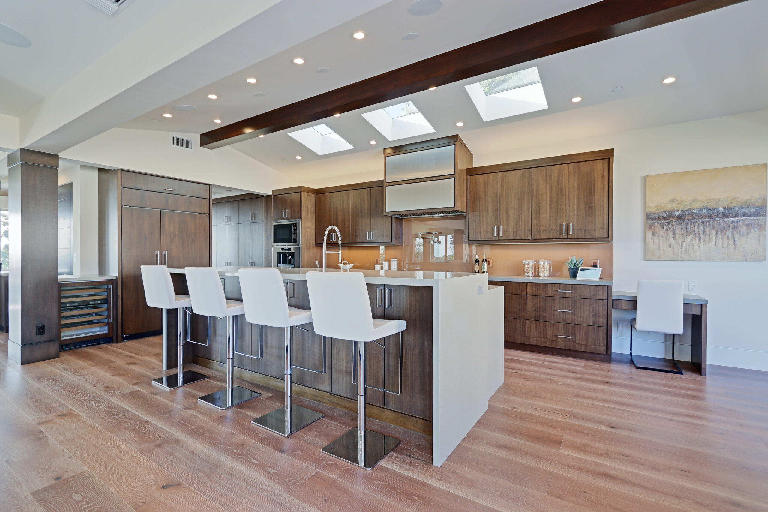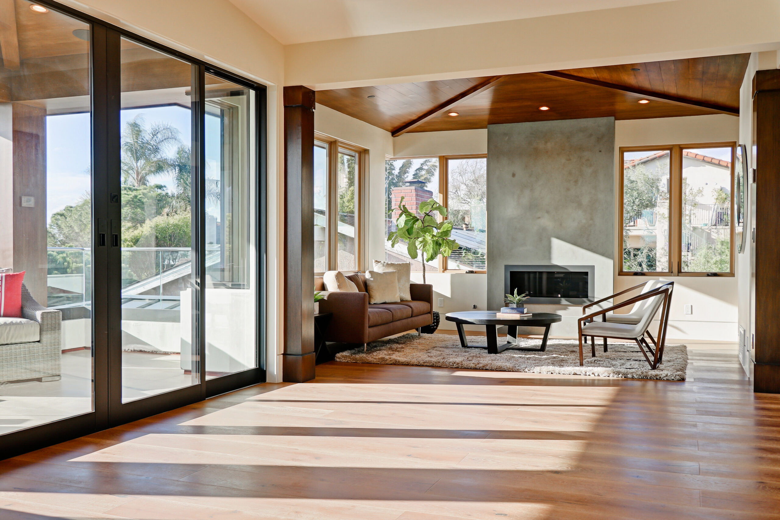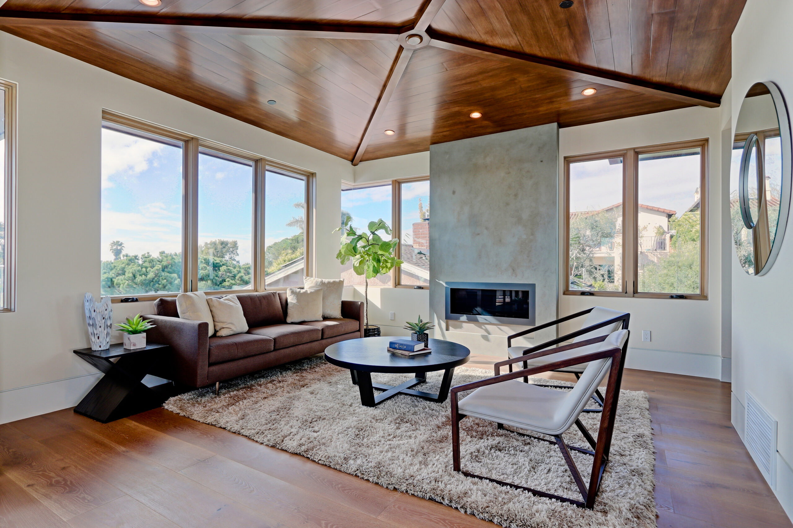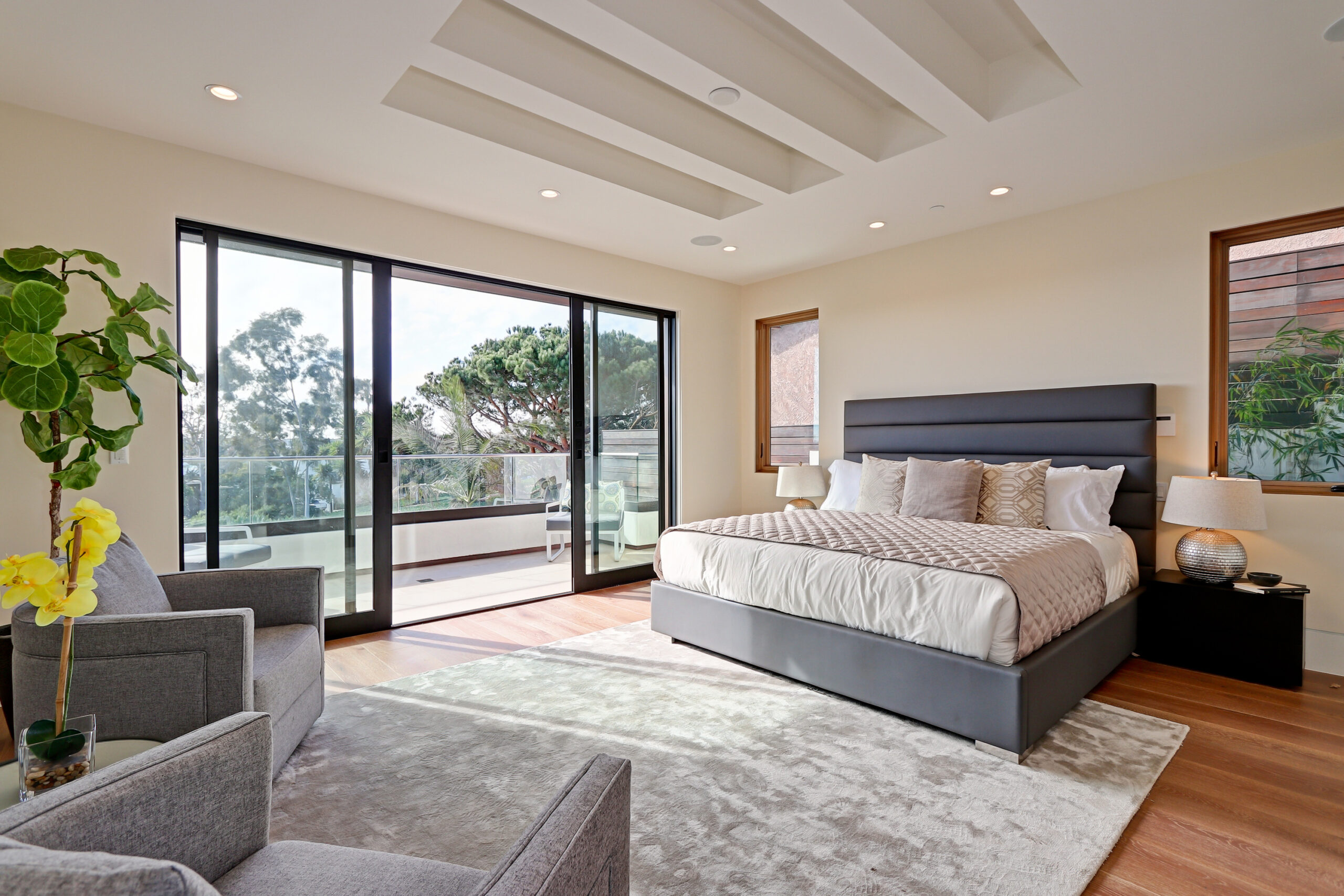 This high-end contemporary home is vertically organized to create distinct yet connected living zones, using subtle grade changes to establish hierarchy while maintaining clear sightlines to the yard, pool, and spa.